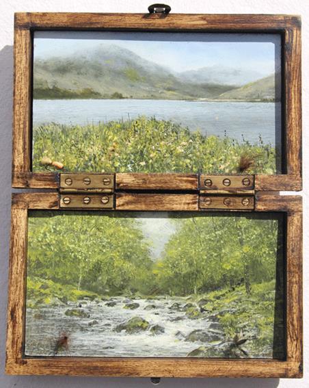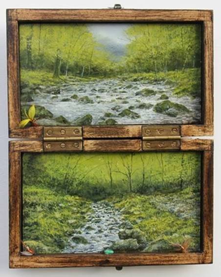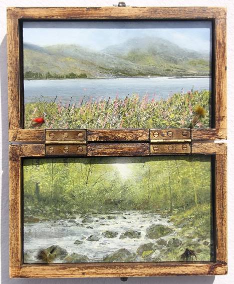 A curious new source of inspiration last year was a ‘massive collection of flies in an antique shop’. “I tracked down some old fly fishing boxes that I saw immediately as being a frame. Within the painted images inside I am trying to match the detail of the flies, and pick up on the colours.”