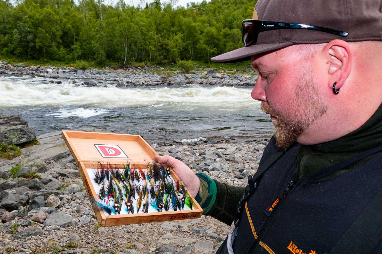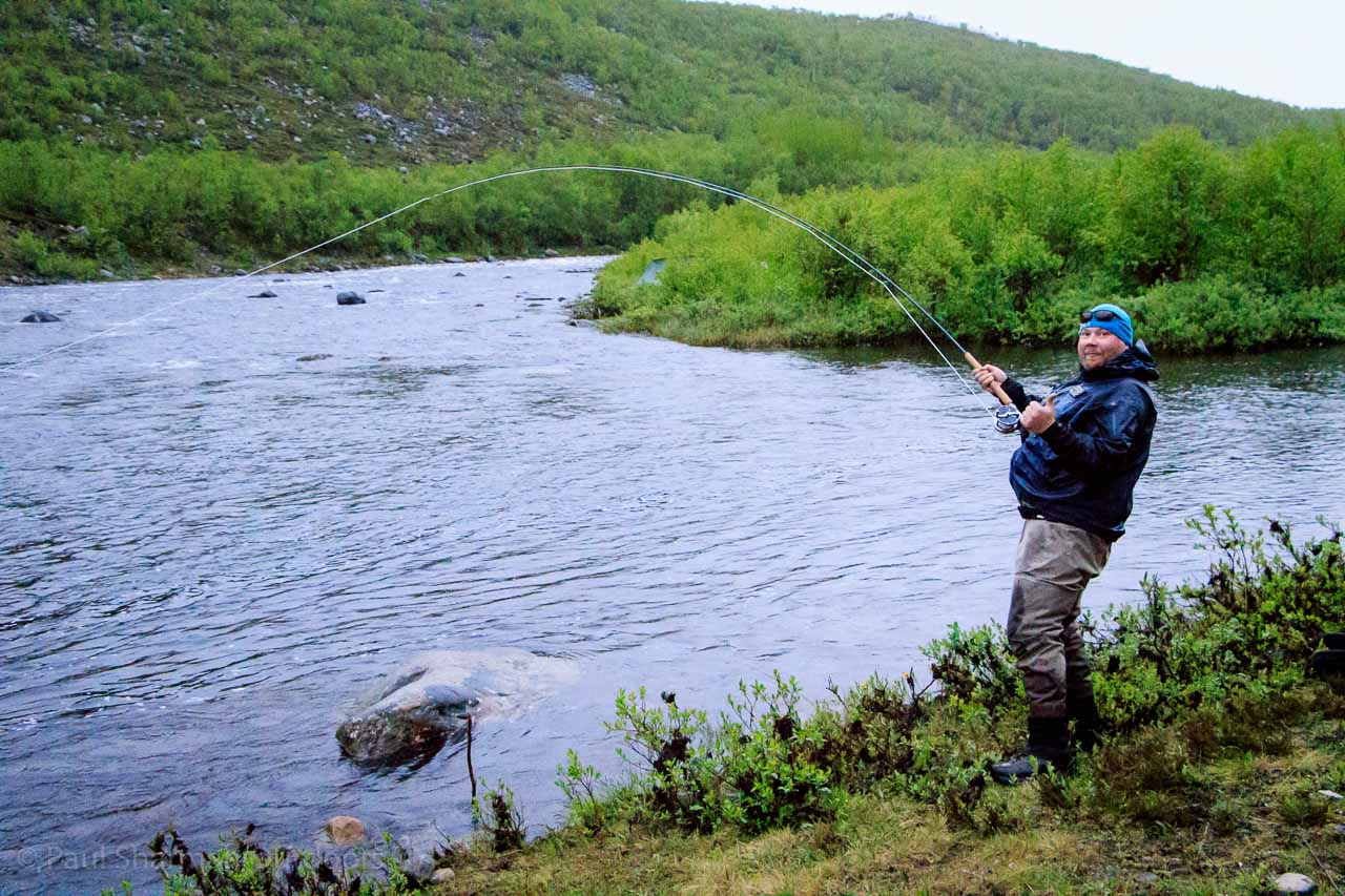 I was out for a few days fly fishing early in July, fishing with guide Ville Kaipennen of Lapland Safaris’ Saariselkä office. We were hoping to target the salmon that should be making their way up the local Finnish and Norwegian rivers of the area, but with the snowmelt running about a month late we weren’t sure what we would find. Those lakes I mentioned above though are stuffed full of trout, grayling, whitefish, char, perch and pike apparently, so there are also plenty of other reasons for anglers of all interests (fly and lure) to visit as you are bound to find something you like, not to mention the pure clean air, outdoor lifestyle, empty roads and just peace and quiet. Heaven!
