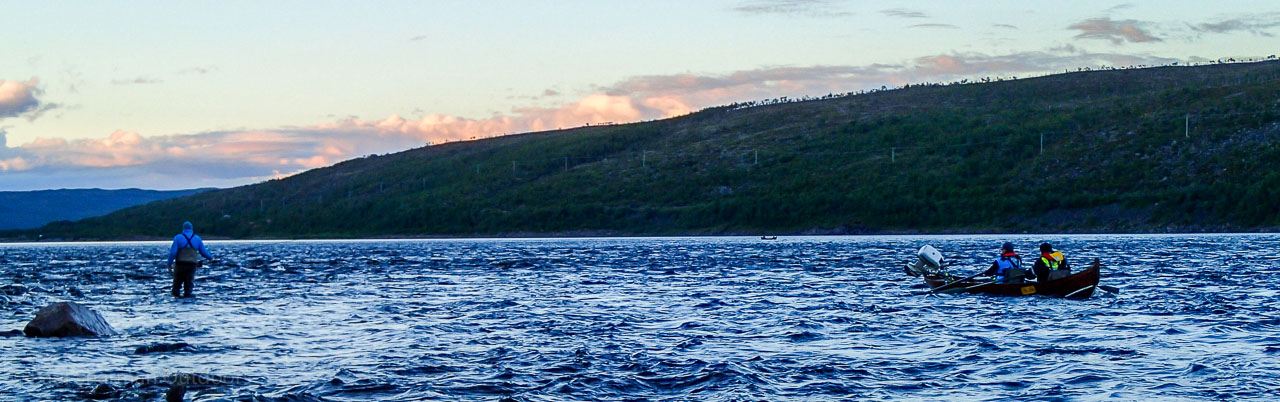 After a fun couple of nights, including one out in a boat on this beat, we moved locations back to the Finnish side of the border near to the small border crossing town of Utsjoki to fish one of the smaller tributaries of the mighty Tana river (also known as the Teno depending if you are on the Norwegian or Finnish sides of the river). This river it is said has one of the largest Atlantic salmon runs in Europe and it is a very wide river with back-trolling from the local style of narrow wooden fishing boat very popular it seemed.